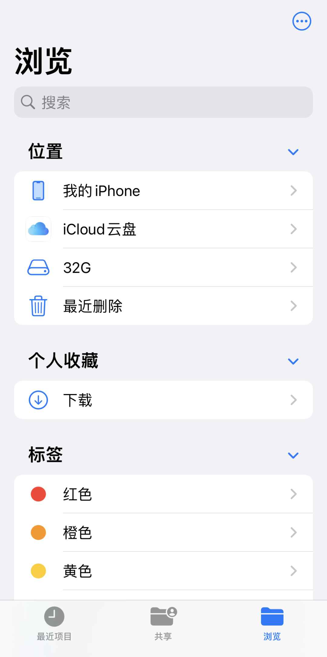 把要传输的文件存到U盘,然后通过Lighting转USB适配器插到iPhone上。打开iOS系统自带的“文件”APP,点击右下角的“浏览”,此时在“位置”中应该就可以看到U盘了。在下面的截图中,就是“32G”那个图标。