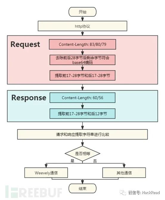 判断请求body部分中第17位字节到第28位字节和倒数第17位字节到倒数第28位字节与响应body部分提取的第17位字节到第28位字节以及倒数12位字节匹配是否相等。