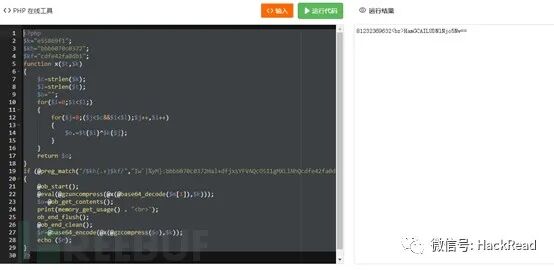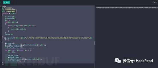 通过代码逻辑可以对混淆的Webshell语句进行还原,还原结果如下图所示: