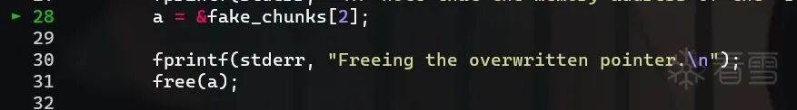 // free(a);fprintf(stderr, "So, instead, we'll free %p.\n", b);