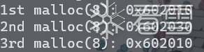 fprintf(stderr, "2nd malloc(8): %p\n", malloc(8));