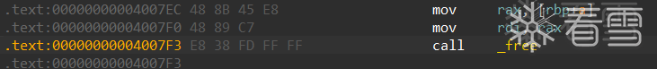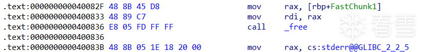 在free(f1),free(f2),free(f1)后,在0x40083B下断点。