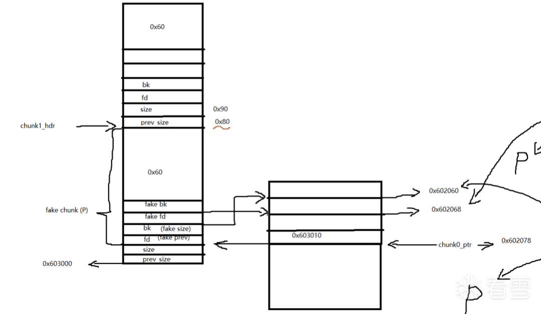 现在堆结构如图。因为chunk_prev_size=0x80,所以P_chunk如下: