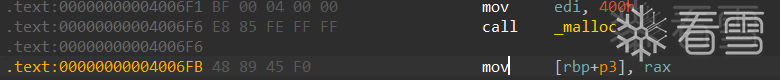 然后malloc函数会从top_chunk获取chunk,那么p1的地址就已经和p3指向同一块地址了。