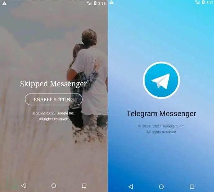 2022年和2023年初,Arid Viper开发了几个新的SpyC23版本,其中有两个App伪装成了Telegram,另一个则伪装成了一个名为Skipped Messenger的约会App。