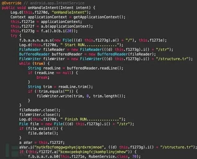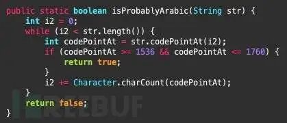 这个类负责应用程序的大部分上传请求处理,充当应用程序和C2服务器之间的接口。Brodie包含一个名为isProbablyArabic的方法,这也表明这些应用程序针对的是讲阿拉伯语的目标用户。