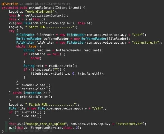 这些录音代码中有一部分托管在GitHub库中,虽然有可能是威胁行为者根据开源项目移植,但SpyC23 APK之间的相似之处是一致的,并且外部版本没有相同的变量或日志信息。
