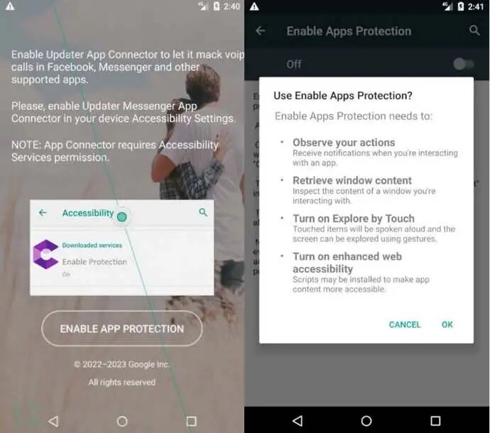 跟大多数Android恶意软件一样,这些应用程序会要求目标用户给植入的App提供更多权限,这样便能够为间谍软件的活动提供便利。