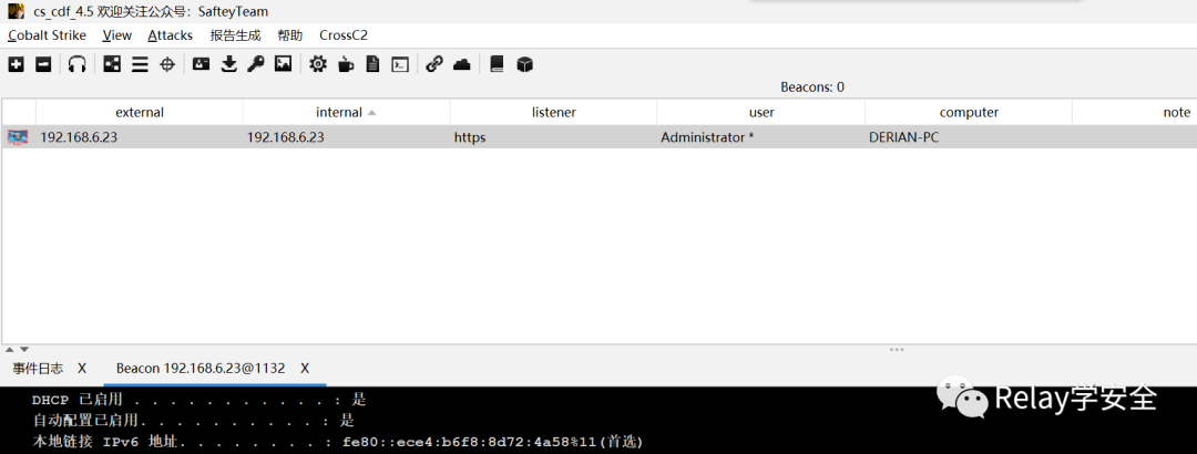 ./teamserver 192.168.6.21 yyds123 jQuery_CS_4.5.profile测试其他主机链接 , 拒绝链接