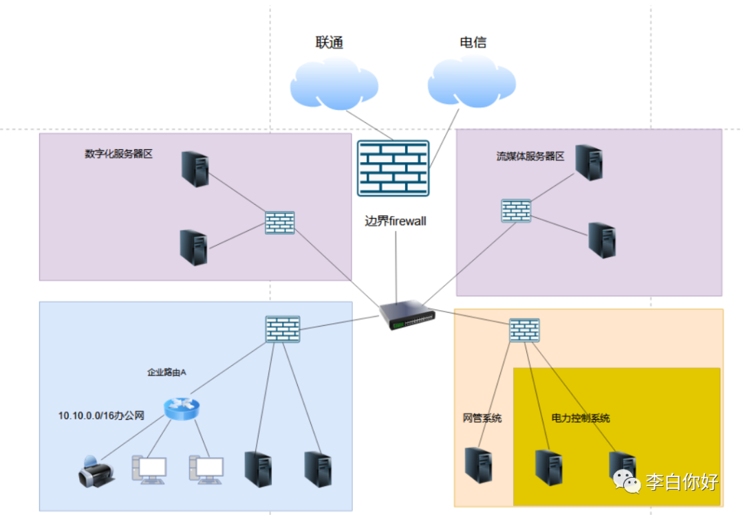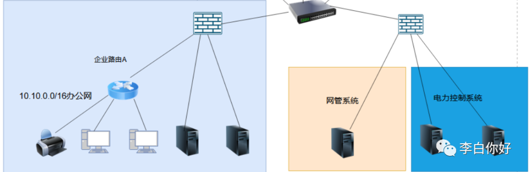 剩下的两个区域分别为办公网以及网管区域,因为涉及很多网管系统