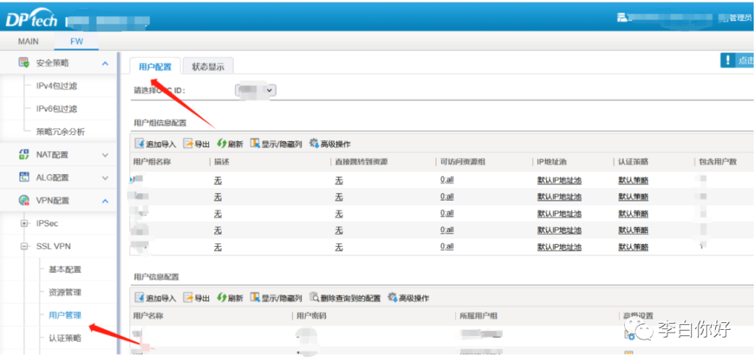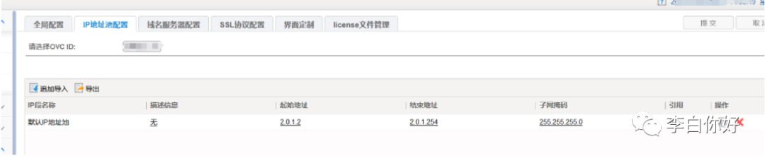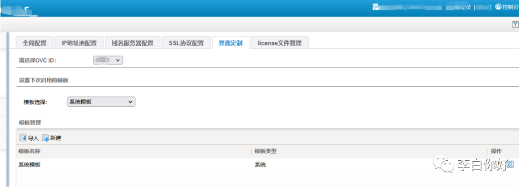VPN默认地址池,配置后的子网ip2.0.1.2/24,界面定制选择默认系统模板