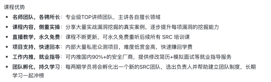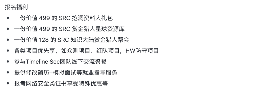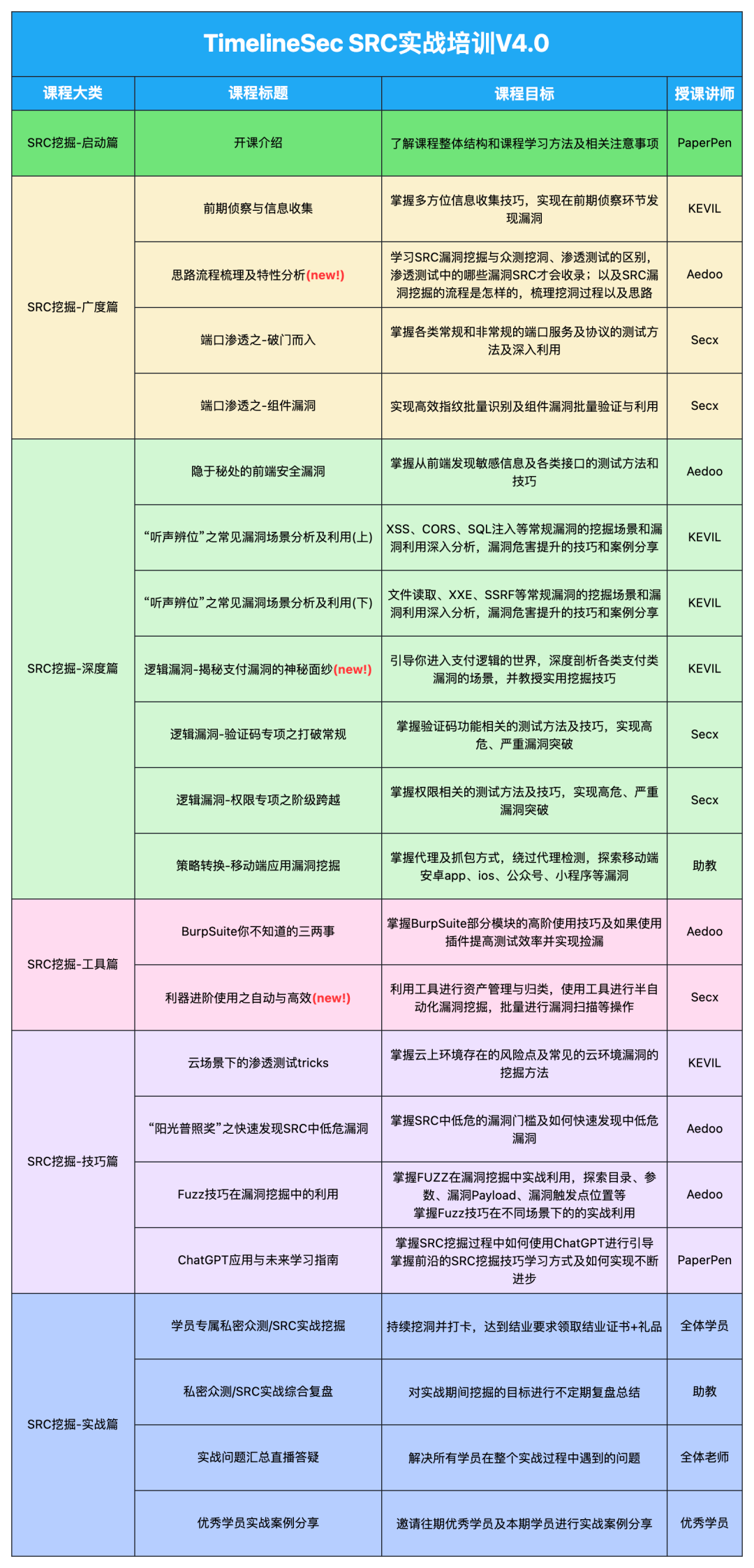 TimelineSec的SRC培训班第4期可以报名了,很强很专业的一个挖洞团队,强烈推荐!想快速入门挖SRC漏洞的可以去了解下,感觉可以的再报名。