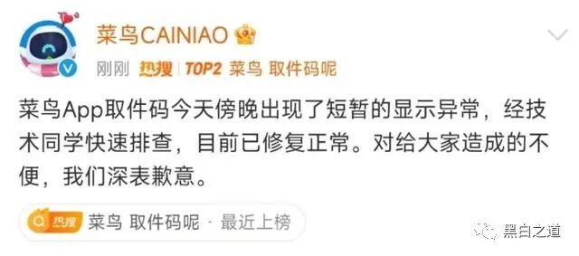 快递和取件码都不见了?网友称菜鸟App崩了,官方回应