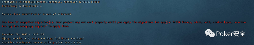 python manage.py migrate导入完之后就可以尝试启动了(成功版)