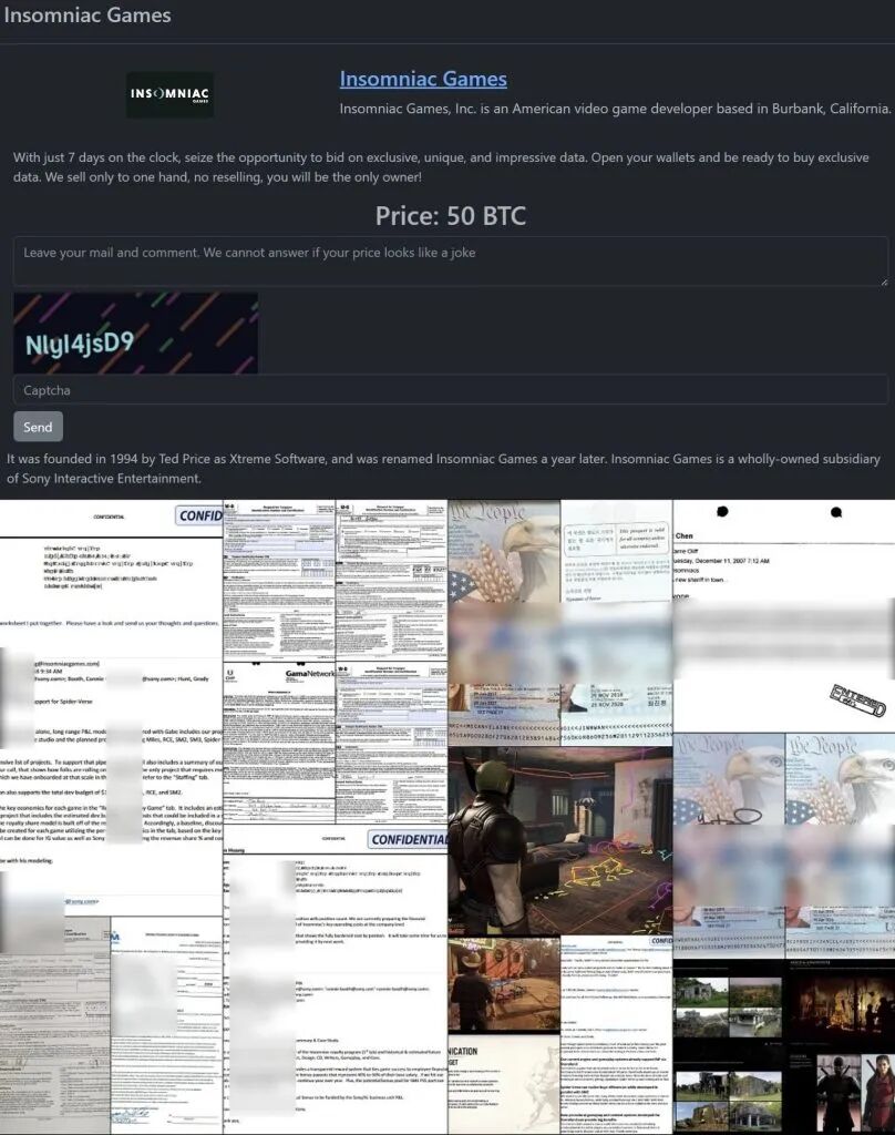 Insomniac Games是一家总部位于加利福尼亚伯班克的美国视频游戏开发商,该公司在2019年被索尼互动娱乐以2.29亿美元收购后成为PlayStation Studios旗下的一个游戏工作室。其代表作有《漫威蜘蛛侠》《拉切特与克兰克》《抵抗》《小龙斯派罗》等系列作品。在Rhysida勒索软件团伙公开的截图中,能够看到一些机密的内部电子邮件、护照和身份证的复印件,以及游戏素材或游戏画面的图像。Rhysida在暗网博客上的帖子中写道,距离这些“独家、独特、令人印象深刻的”数据开拍仅剩一周,他们强调只会卖给一个人,拍卖时出价高者将是唯一的所有者,起拍价为50比特币(价值约200万美元)。——勒索软件团伙通常都会像这样通过设置一个拍卖期限来迫使受害者支付赎金。据了解,Rhysida是才冒头不久的一个网络犯罪组织,于今年5月首次被发现。美国网络安全基础设施与安全局(CISA)将其描述为一个以教育、医疗、制造、信息技术和政府部门作为攻击目标的威胁行为者。Rhysida在今年6月曾成功攻击并泄露智利政府的数据,后又于8月攻击美国医疗集团Prospect Medical Group,引起轰动。根据Cybernews的勒索软件监控工具Ransomlooker,该团伙在过去12个月内已经攻击了近50个组织。编辑:左右里