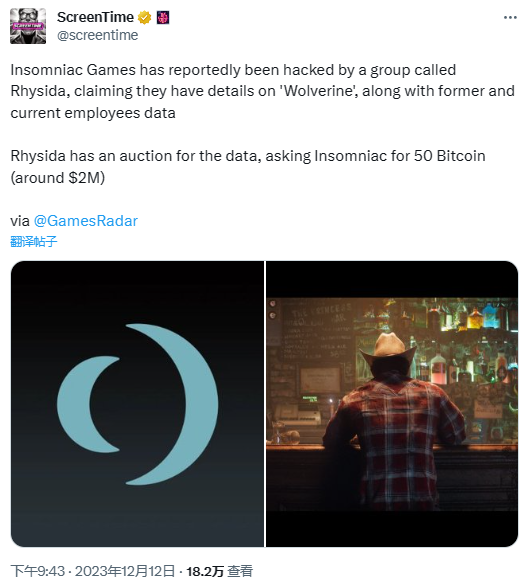 据外媒报道,《漫威蜘蛛侠》系列开发商Insomniac Games最近遭到一个名为Rhysida的黑客组织攻击,该勒索软件团伙声称他们窃取到了即将推出的《金刚狼》游戏的详细信息以及一些前任和现任员工的数据。