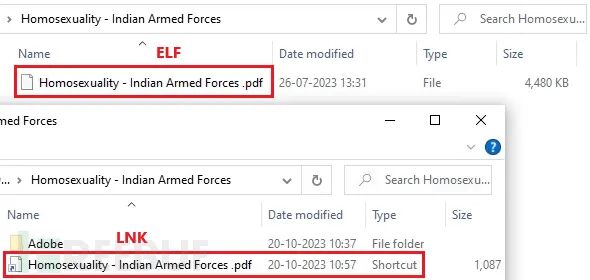 hxxps://sunfireglobal[.]in/public/core/homo/Homosexuality%20-%20Indian%20Armed%20Forces.zip其中包含了一个恶意快捷方式,文件名包含双扩展名,文件名为“Homosexuality – Indian Armed Forces .pdf.lnk”,这个快捷方式将触发一个远程HTA文件: