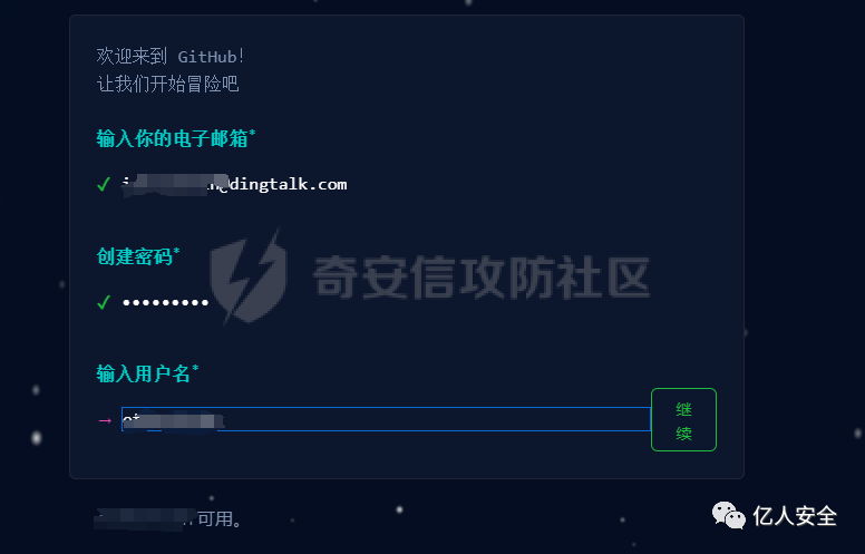 前往GitHub注册页面,输入“XXX”,发现用户名可用,完成注册操作,新建一个js仓库