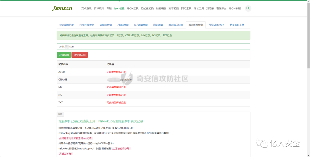 于是我查询了cdn1.site.com的解析记录,发现指向了XXX.github.io。我去搜索这个“XXX”这个用户名,但是在GitHub上搜不到,直接访问XXX.github.io也不行,我推测可能是这个账号已经注销掉了。
