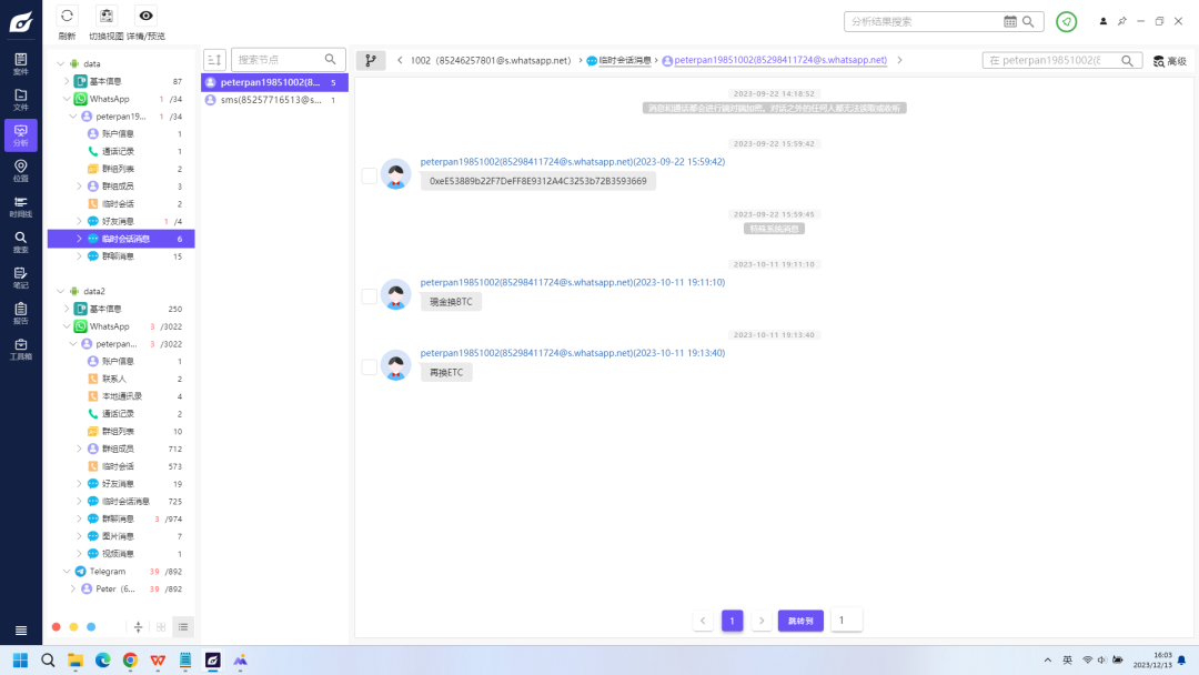 82直接火眼加载手机备份文件会提示需要密码,其实可以直接加载data文件夹即可解数据,或者sqlite手看也可以,WhatsApp聊天记录找到,但是修改记录没找到,找数据库内容太多,暂时没找到,欢迎大佬补充。
