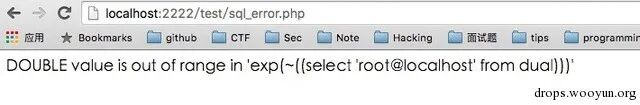 exp(~(SELECT * FROM(SELECT user())a))";