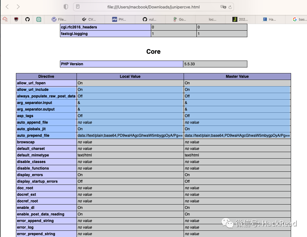 谈到公开的PoC,他们使用CVE-2023-36846上传可执行文件test.php和文件php.ini。 接下来,他们利用CVE-2023-36845更改PHP的PHPRC环境变量,以通过php.ini文件执行test.php文件。 但其RCE仅止于执行phpinfo()和LFI函数读取部分内容,并不能提权或产生任何影响。
