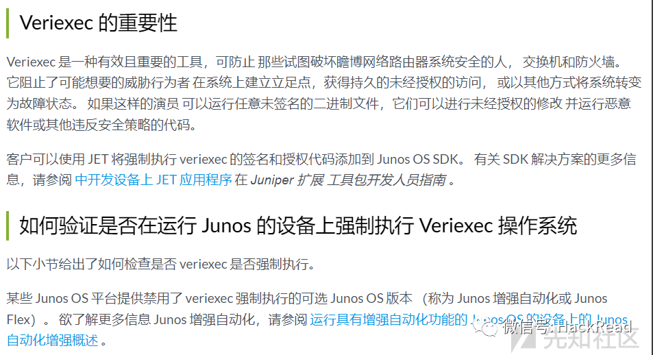 那么为什么 root 用户不能执行这些基本命令呢? 因为 Juniper 从版本 7.5 开始默认安装一个工具来限制此执行权限,即使它是 root 用户,因此为 Juniper 的开发团队整了个Veriexec: