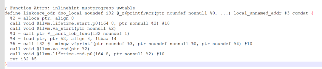 declare dso_local i32 @__mingw_vfprintf(ptr noundef, ptr noundef, ptr noundef) local_unnamed_addr #7declare dllimport ptr @__acrt_iob_func(i32 noundef) local_unnamed_addr #8