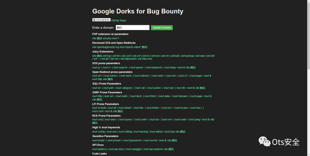 Google Dorks的应用范围广泛,可以针对不同的漏洞类型生成相应的搜索语句。比如,可以通过带参数的PHP扩展、易受XSS攻击的参数、打开重定向容易的参数等等,精准锁定潜在的漏洞点。这使得安全研究人员能够高效地进行漏洞挖掘,加速Bug Bounty的进程。