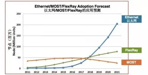 车载以太网不仅具备了适应ADAS、影音娱乐、汽车网联化等所需要的带宽,而且还具备了支持未来更高性能的潜力(如自动驾驶时代所需要的更大数据传输)。它将成为实现多层面高速通信的基石,相对于20世纪90年代的控制器局域网(CAN)革命,它的规模将更大,意义将更深远。专家预测,到2020年,汽车中部署的以太网端口将达5亿个。