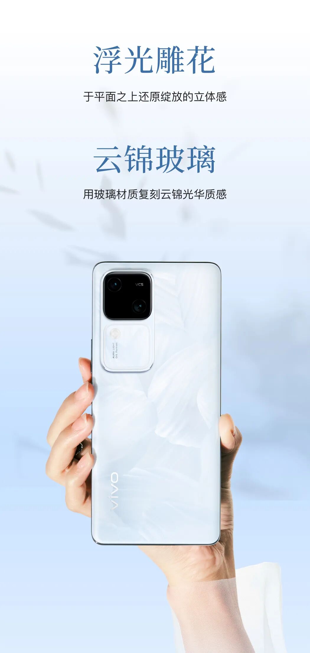 vivo CMF 团队精准地捕捉到云锦编织工艺中,独特触感光泽和花瓣表面柔软细腻之间的通感关系。
