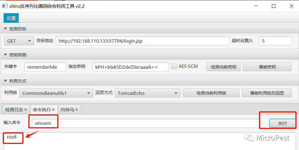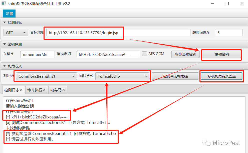 3)选择爆破利用链及回显,同样,爆破成功便如图