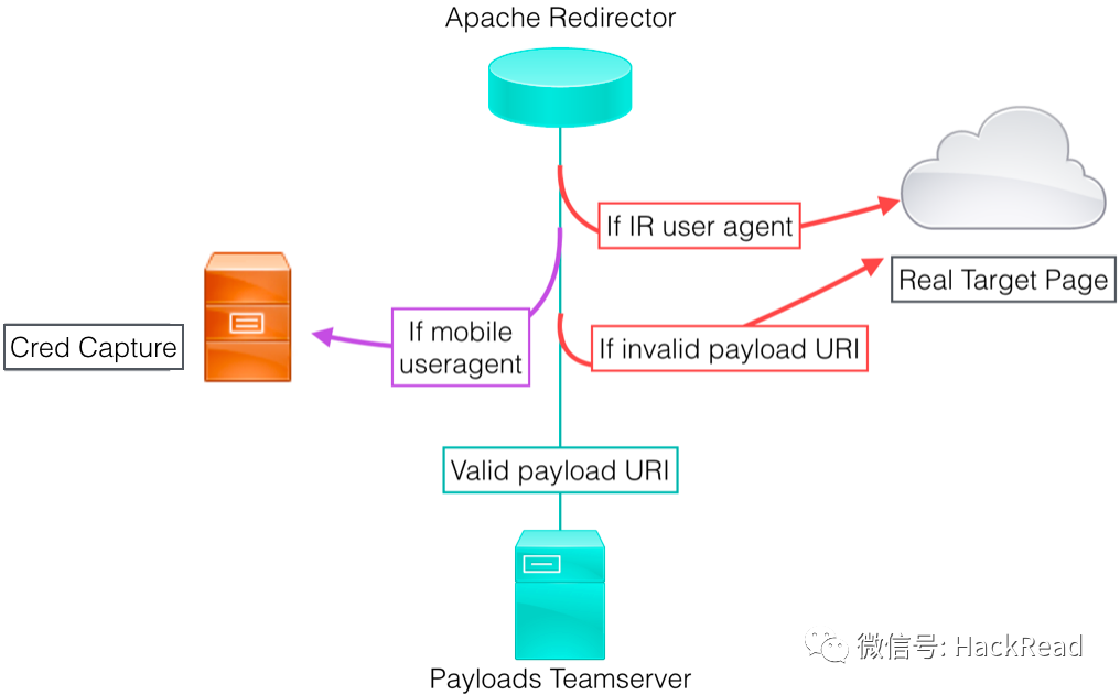 转向器(Redirectors)可以通过redirecting invalid URIs、expiring phishing payload links或blocking common incident responder techniques; 但是,还应该注意潜在的主机及其指标。