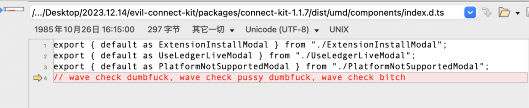 @ledgerhq/connect-kit 1.1.6 (攻击者在代码中留言并植入恶意的 JS 代码)