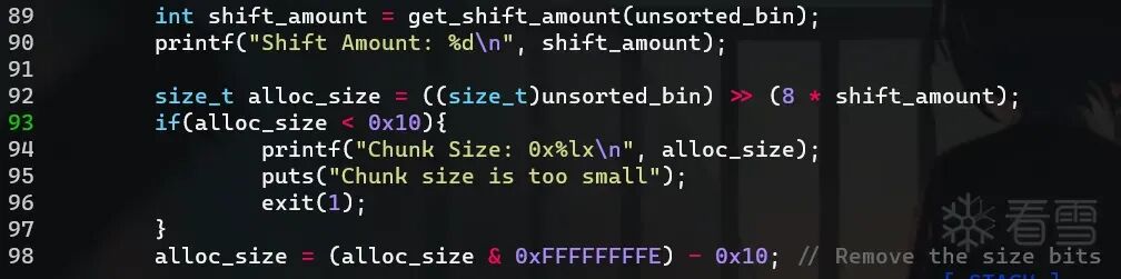 本题泄露利用unsorted bin中保存的libc地址与libc基址的固定偏移获取libc基址。因为结构体在初始化时并未初始化ErrMsg的值,并且其大小为0x90,我们申请一个结构体再将其释放,再次申请时可将其从unsorted bin中申请出来,然后可以通过打印函数打印unsorted bin中的内容。