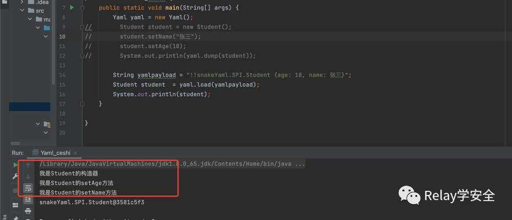 }从打印输出来看他在将yaml格式的字符串转换成对象的时候调用了set方法以及构造器。