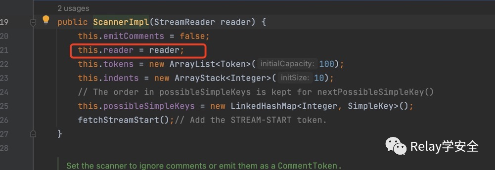 来到ScannerImpl的构造方法,将我们的reader赋值给了ScannerImpl的reader属性。