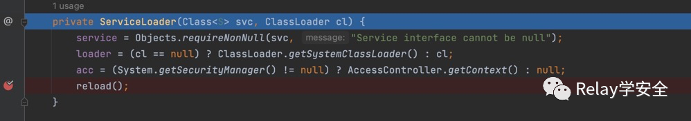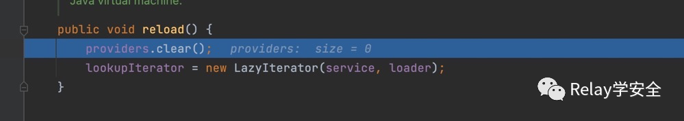 在ServiceLoader构造器中调用了reload方法,跟进去。