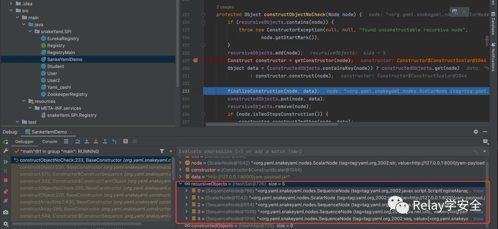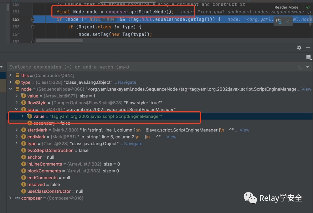 漏洞主要原因是Yaml在反序列化的时候可以通过!!来指定反序列化的类,反序列化的过程中会实例化该类。可以通过构造ScriptEngineManagerpayload并利用SPI机制通过URLClassLoader或者其他payload如JNDI方式远程加载实例化恶意类从而实现任意代码执行。