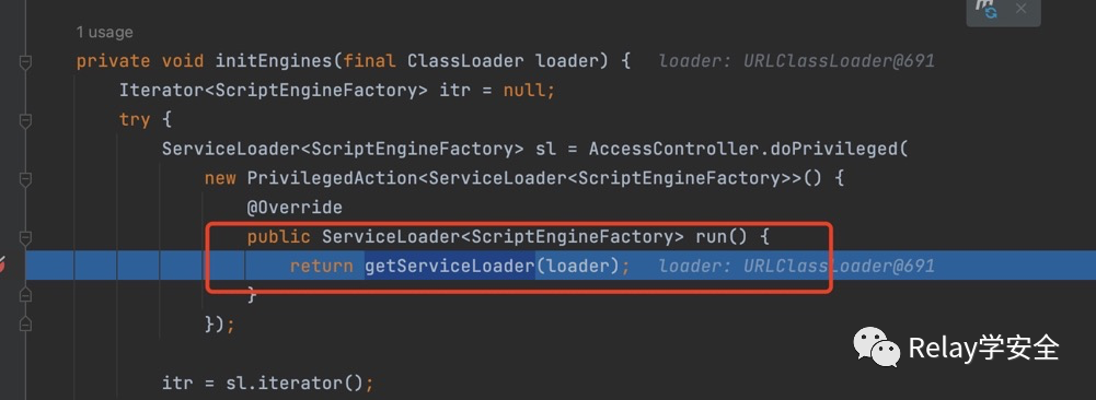 接着调用到ScriptEngineManager构造器的时候,我们跟进去init方法,继续跟进initEngines方法,