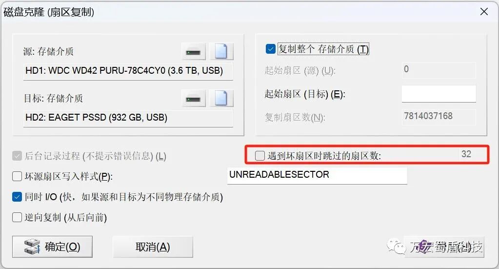 1、如磁盘管理中仍可以识别硬盘的情况下,可使用WINHEX镜像功能对硬盘进行镜像,注意勾选遇到坏扇区跳过。如镜像卡死的话建议立即断电不再尝试。