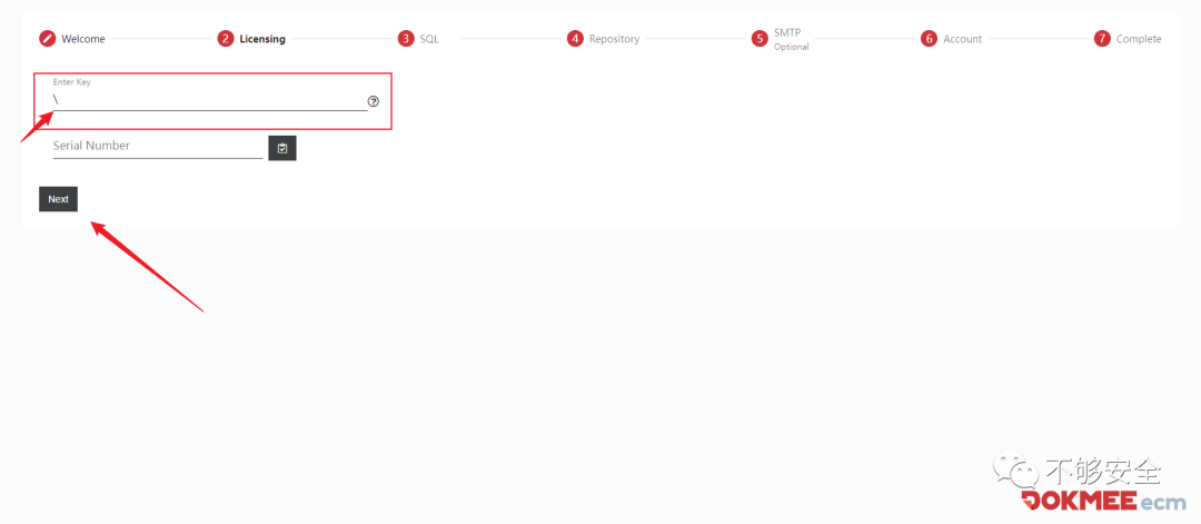 2.点击“Setup”,后在“Enter Key”处输入“\”绕过认证,点击“Next”。