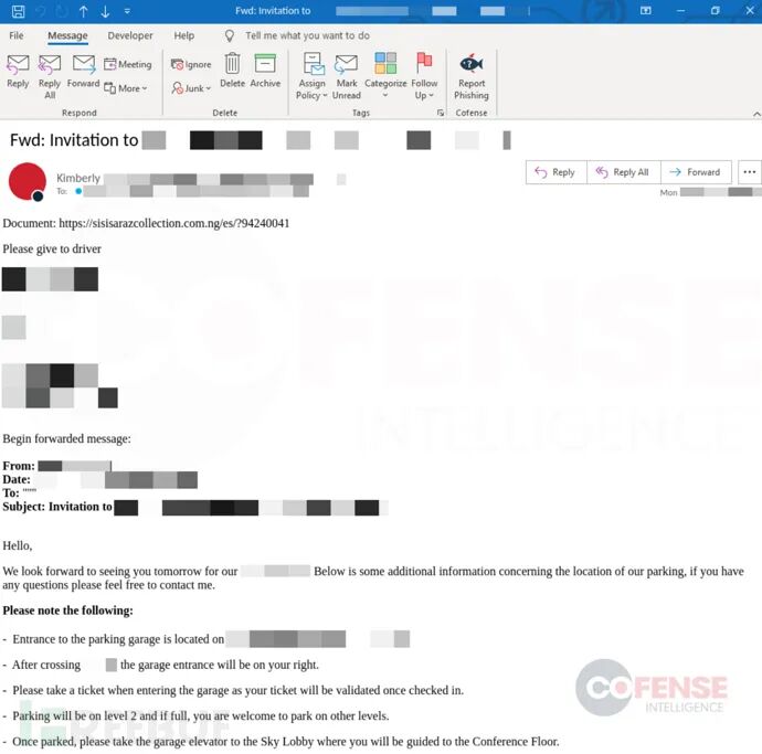 收件人会认为发件人是可信的,如下所示为一个真实的钓鱼邮件示例。钓鱼邮件发送到收件箱的钓鱼邮件,其中包含恶意链接。