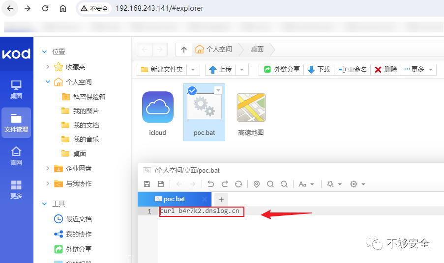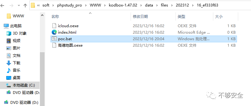 C:\soft\phpstudy_pro\WWW\kodbox-1.47.02\data\files\202312\16_ef333f63\poc.bat2.下面POC均可执行poc.bat文件。