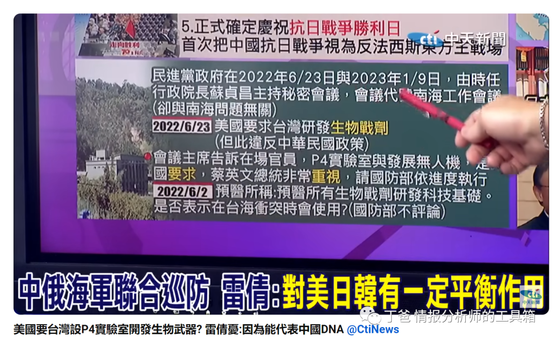 2022年6月23日,美国要求台湾建立P4生物实验室,进行针对中国人的基因生物战研究及开发生基因生物战剂。