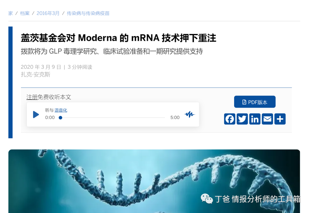 l 2020年3月,比尔盖茨基金会投资莫德纳( Moderna)开发mRNA疫苗。